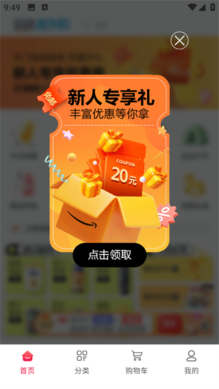 1、新客页面展示礼券与推荐商品,选定目标商品,即可进入商品详情界面,查看具体信息与购买选项。