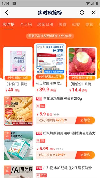 1、天秒杀频道每天上午10点更新10款限量特价商品,热门单品支持提前预约提醒功能避免错过。