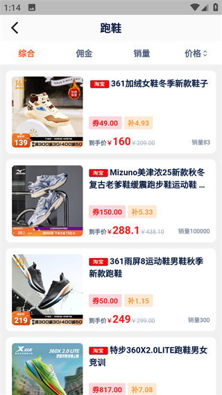 3、在商品列表页面,可查看各类商品的名称、价格、优惠及销量等信息,选择目标商品,点击后即可进入该商品的详情页面。