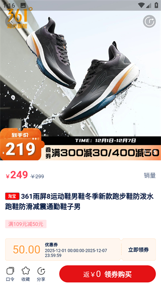 4、打开商品详情页,查看商品的价格、优惠活动及介绍后,可领取对应优惠券,在购买商品时可以获得对应折扣。