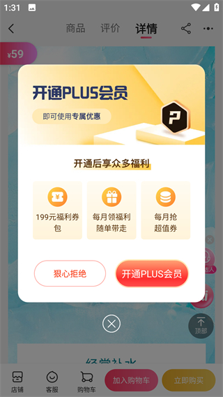 3、在商品详情页,在了解商品详细的内容后,点击下方的按钮,即可将商品加入购物车进行结算。