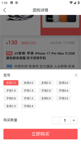 3、在团购列表中选择目标商品,进入团购详情页面,查看商品、奖品信息及参与规则。
