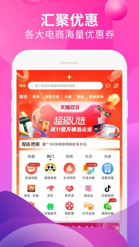 4、即省拥有简洁直观的界面设计与流畅的一键操作流程,从领券到跳转购物无缝衔接,极大提升使用效率与整体体验满意度。