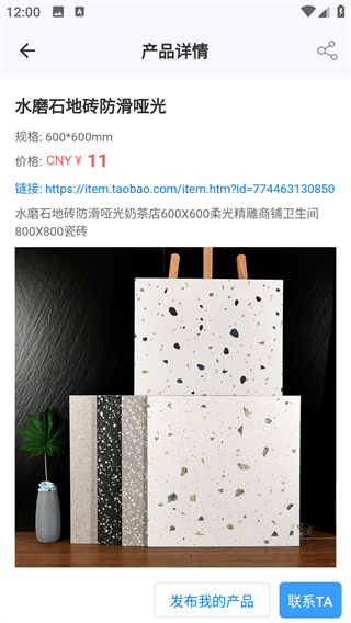 4、进入产品详情页,确认商品的规格、价格等信息无误后,点击页面底部的发布产品的按钮。