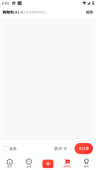 2、完成定位后,可查看交易物流、通知消息等分类入口,点击底部加号按钮,进入快捷发布功能界面。