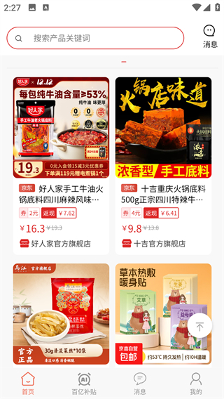 2、在商品列表页,可查看不同品类的商品,了解到相关的价格、券额与优惠金额。
