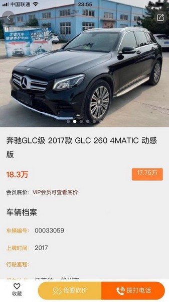 3、在车辆详情页查看价格、档案等信息,点击【我要砍价】发起砍价。