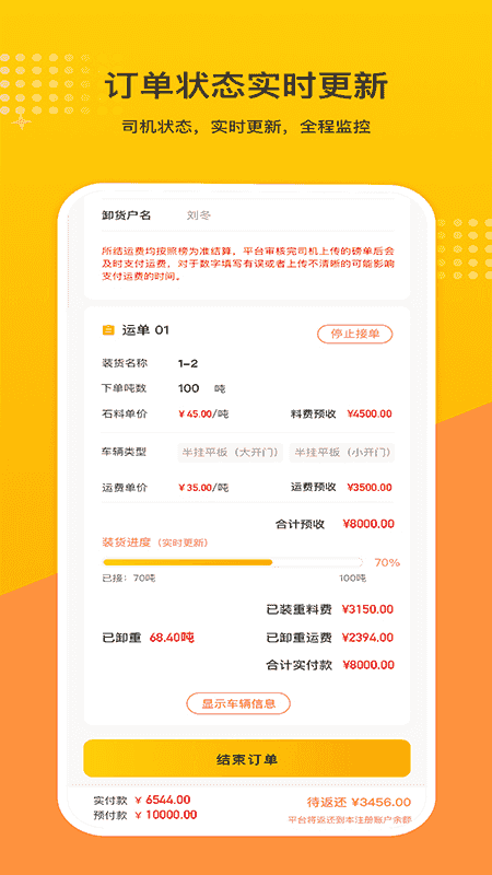 1、平台深度服务于采石场等货主与个体或车队司机,所有功能设计均围绕这一特定货品的运输特性展开。