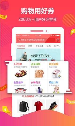 5、推出特卖、低价、白菜价、9块9包邮等多元优惠活动,优惠形式丰富,日常购物也能享受超划算价格。