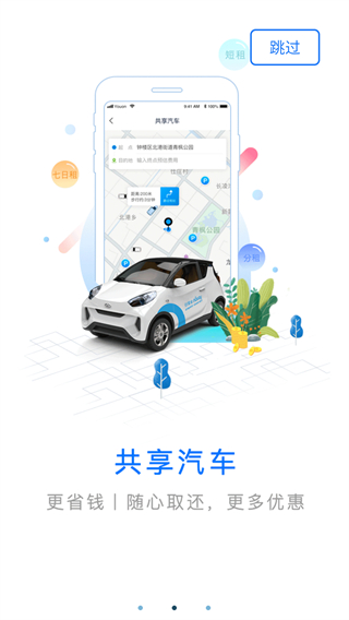 1、覆盖全国百余城市的共享出行网络,随时查看周边可用的自行车、助力车及电动汽车分布情况。
