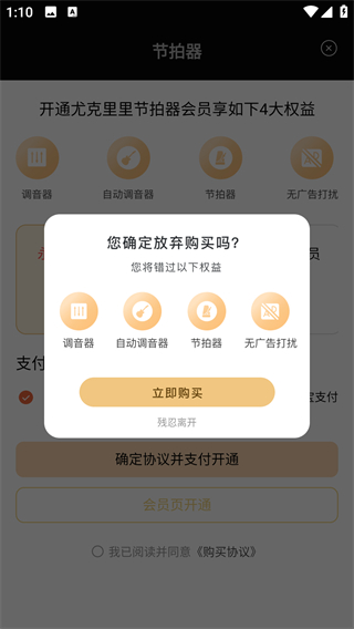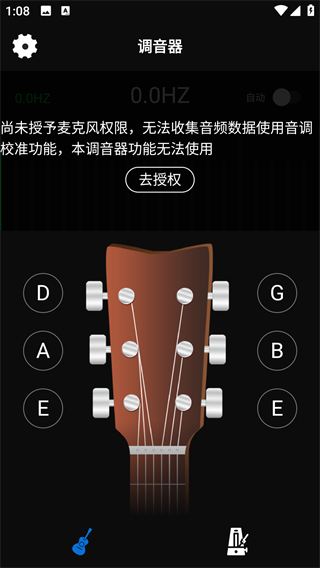 1、在首页下方点击对应功能按钮,可从调音器页面切换至节拍器页面,以便进行节奏相关设置。