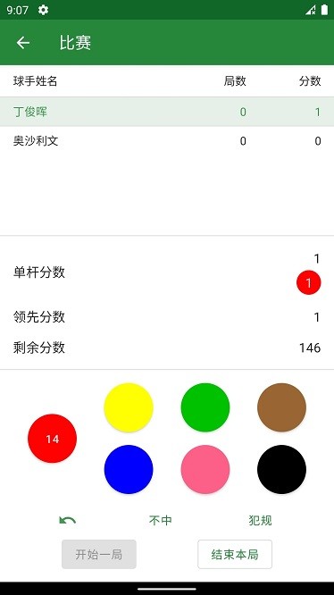 1、应用内预设了标准的斯诺克计分流程,自动处理自由球、复位球、斯诺克做成功等复杂规则的分数计算。