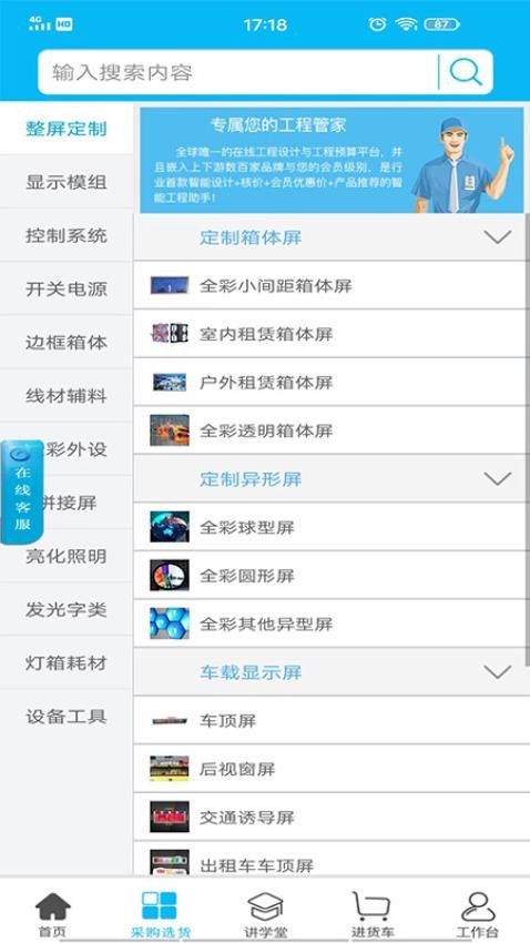 2、在【预算助手】页面,点击【户外租赁箱体屏】选项,进入对应商品列表页面。