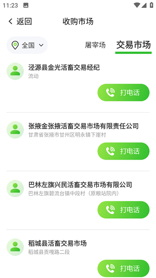 2、进入市场页面后,可查看相关主体列表,还能切换地区范围,方便了解当前地区的养殖与屠宰场分布。