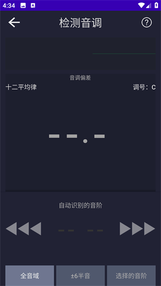 1、具备强大的实时音频分析能力,可精确测量音高偏离程度,乐器声音通过麦克风采集后立即显示检测结果。