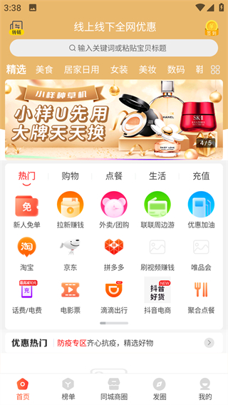 领取商家优惠,节省购物开销。
