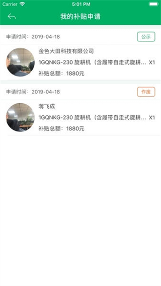 2、在补贴公示页面,通过年份品目地区筛选公示信息,能看到申请人的购机信息补贴金额等内容。