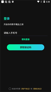 2、在【藏品】页面点击“登录后才可以购买数字藏品”提示旁的【去登录】按钮,可进入登录页面。