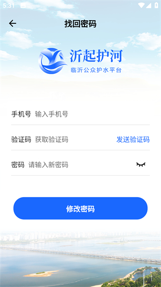 1、进入沂起护河登录页面,需在对应输入框填写手机号与密码,完成后可点击登录按钮进入平台。
