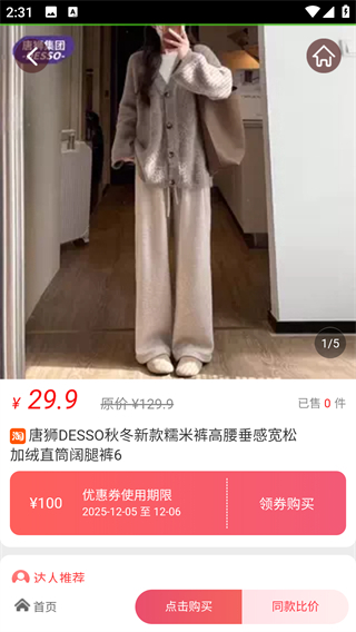 3、商品详情页呈现产品信息,启用领券功能,即可获取优惠并进入购买流程,完成下单操作。