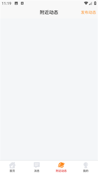 1、在首页点击底部附近动态选项,可进入附近动态页面,该页面用于查看或发布周边相关动态,需登录后使用。