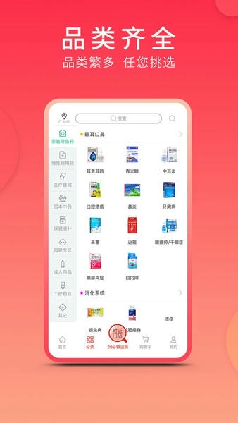 2、整合线上线下全渠道药品资源,提供品种繁多且来源可靠的各类药品,满足用户日常用药与特殊健康管理的多元化需求。