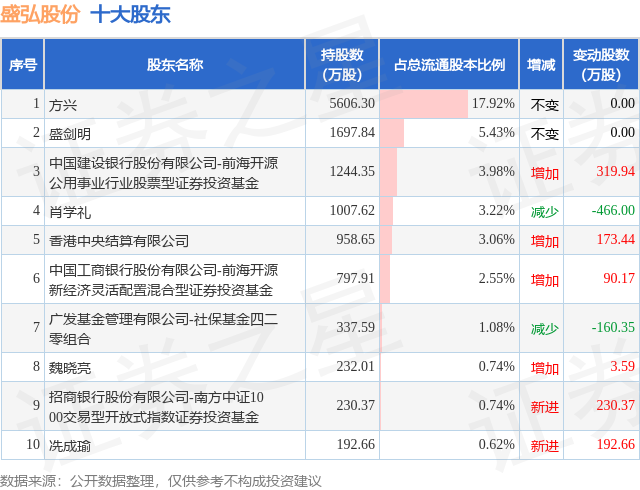 根据盛弘股份2025年中报公布的十大股东详情如下: