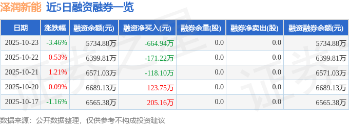 泽润新能融资融券信息显示,融资方面,当日融资买入1062.14万元,融资偿还1727.07万元,融资净偿还664.94万元。融券方面,融券卖出0.0股,融券偿还0.0股,融券余量0.0股,融券余额0.0万元。融资融券余额5734.88万元。