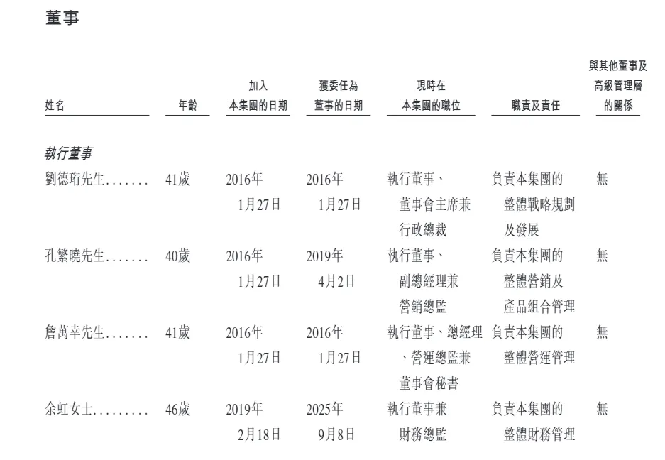 聚芯微董事会由九名董事组成,包括四名执行董事、两名非执行董事及三名独立非执行董事。联合创始人詹万幸为执行董事、总经理、营运总监兼董事会秘书,负责集团的整体营运管理;联合创始人孔繁晓为副总经理、执行董事兼营销总监,负责集团的整体营销及产品组合管理。