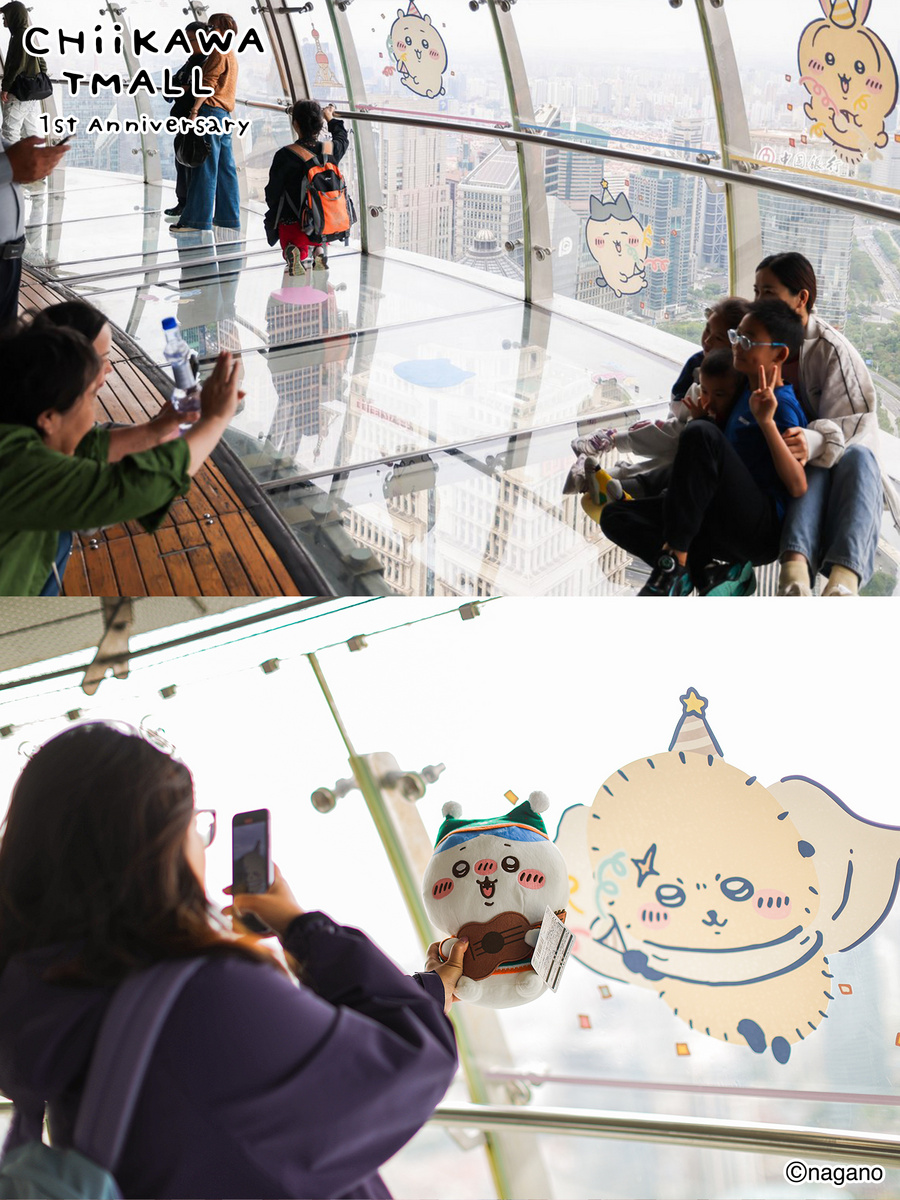 不仅地面场景丰富,东方明珠塔的高空空间也融入IP元素。259米高空玻璃栈道首次开放IP联动合作,以吉伊卡哇主题元素装饰,游客可在此与IP形象合影并俯瞰浦东全景,打造“高空+IP”的独特体验记忆点。