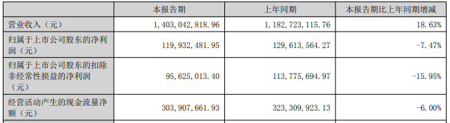 2025年上半年,星宸科技营业收入为14.03亿元,同比增长18.63%;归属于上市公司股东的净利润为1.20亿元,同比下降7.47%;归属于上市公司股东的扣除非经常性损益的净利润为0.96亿元,同比下降15.95%。