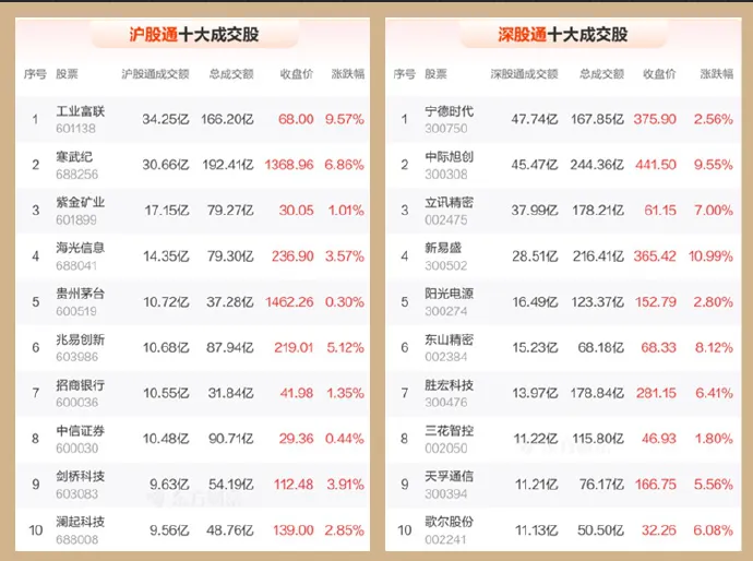 4、北向资金共成交2468.66亿元,占两市总成交额的13.17%——