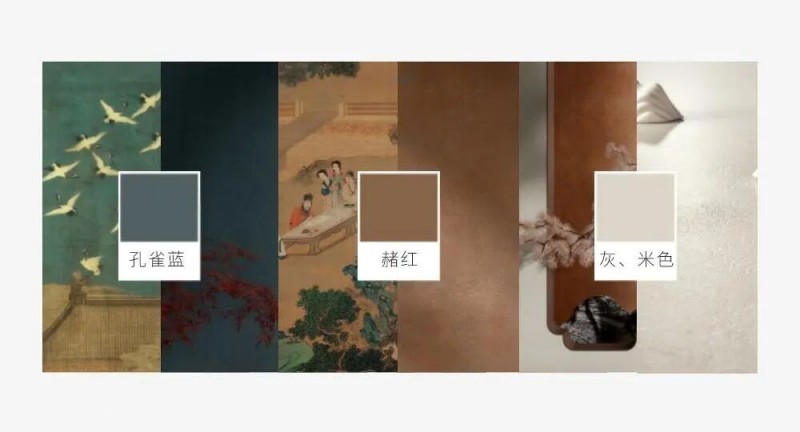 色彩密码:系列特别提炼出内敛温和中性色为主色调,以极具宋代特色的孔雀蓝、赭红色作为配色,点缀于中性色之间,为现代空间注入一抹沉静而不失格调的诗意。