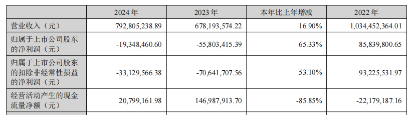 2023年、2024年,公司实现归属于上市公司股东的净利润分别为-5580.34万元、-1934.85万元。
