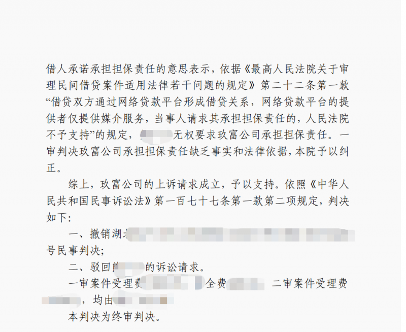 湖北中院宣判出借人与玖富非民间借贷关系,玖富系信息中介不担责