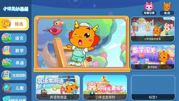 小伴龙动画屋TV版是有伴科技专为儿童打造的大屏早教平台,聚焦孩子成长学习需求,整合海量优质原创教育资源,涵盖语数外基础课程、生活百科知识、经典儿歌动画等多元内容,且持续更新扩充资源库。内容体系紧密衔接小学知识架构,助力孩子提前储备基础学识,更贴心配备儿童锁功能,家长可灵活管控使用时长,既有效保护孩子视力,又避免沉迷动画,成为家庭早教场景中实用且专业的优质选择。