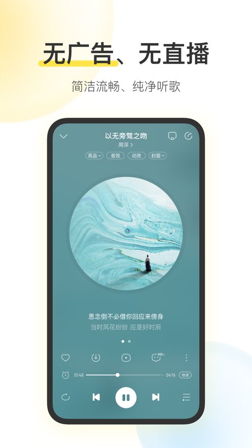 2、无广告无直播干扰,界面设计极简且操作流畅顺滑,专注打造纯粹的听歌环境,让用户能沉浸享受音乐带来的听觉体验。