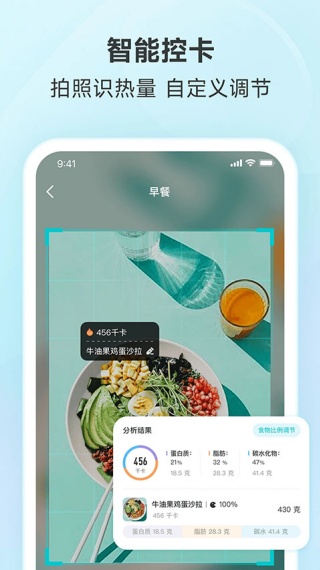 3.根据身体的数据和个人目标,推送适配量身定制的饮食建议和运动指导。