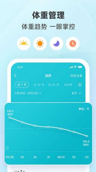 2.自动生成清晰的体重、体脂曲线图,体重上升、体脂变化趋势一眼就能看穿。