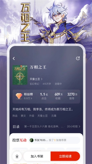 2.很多爆款作品都是独家连载,可以抢先看到最新章节,甚至参与作品的未来发展,享受最前沿的阅读快感。