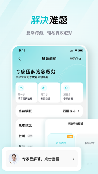 1.碰到拿不准的病例,能直接向院士专家团队发起“疑点问询”,获得权威的指导思路,等于把专家请到了身边。