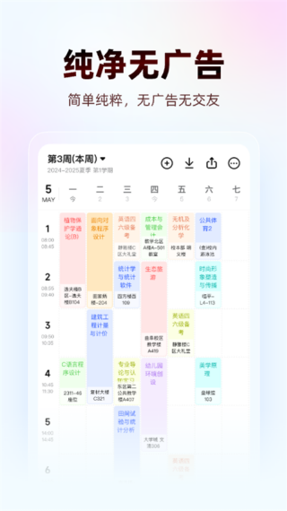 3.提供纯净的使用体验,所有界面均无任何形式的广告,从启动到日常浏览,都不会出现干扰信息,可以专注在课程管理本身。