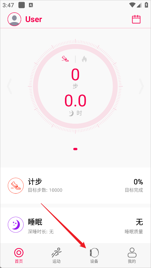 1.进入软件后点击下方导航栏的设备按钮;