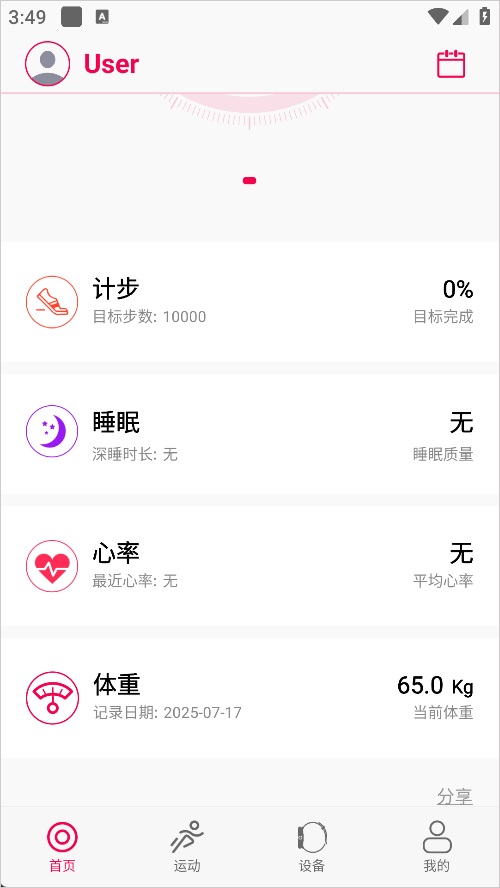5.设备匹配成功后你就可以在手机上时时看到自己的健康信息以及运动数据。