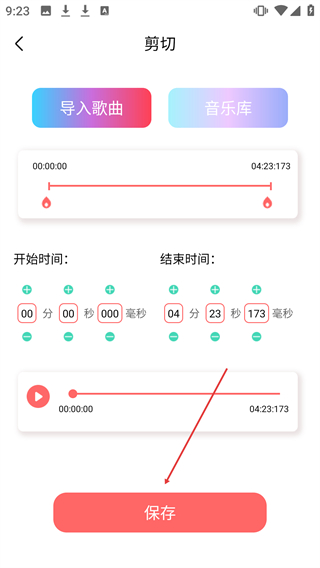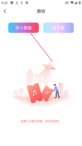 2、在【剪切】页面点击【导入歌曲】按钮,进入本地音乐页面。