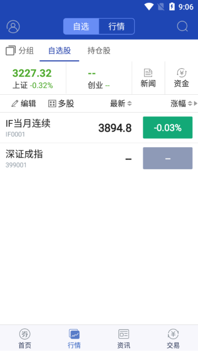3、在“自选”中,可以观看一下其他支的行情,然后再选择购买;点击左上角的【分组】可以切换或者添加自选股分组;