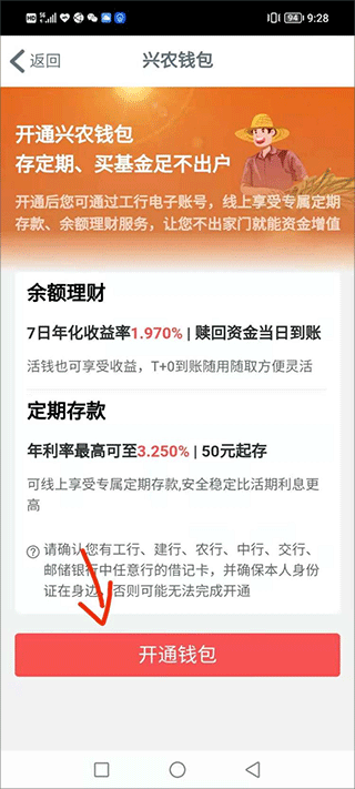 2、然后点击“开通钱包”,进入申领流程;