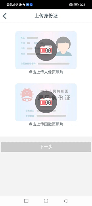 3、按要求拍摄用户的身份证正反面照片 然后上传时需要核对个人身份信息;