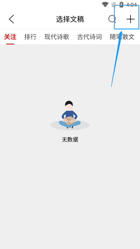 3、跳转至文稿页面后,点击“+”号