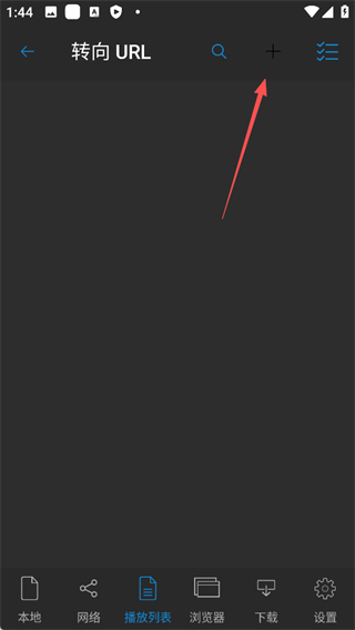 1、打开nPlayer安卓版,在播放列表板块点击【转向URL】;